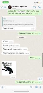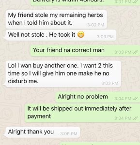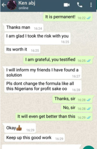 I’ve personally benefited immensely from this traditional formulation and am really delighted that I have the opportunity to introduce it to all the men in Nigeria so that every one of us can get rid of our male sexual health problem once and for all.